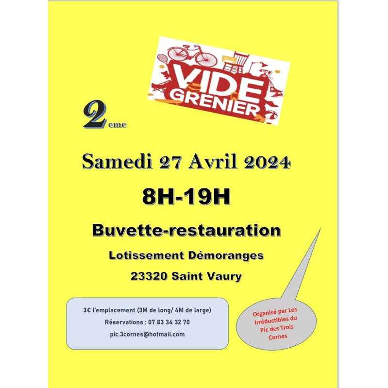 Vous l’attendiez , le voilà ! Après un fort succès sur la première édition , nous sommes impatients de vous retrouver sur cette seconde édition vide grenier des irréductibles du pic des trois cornes !