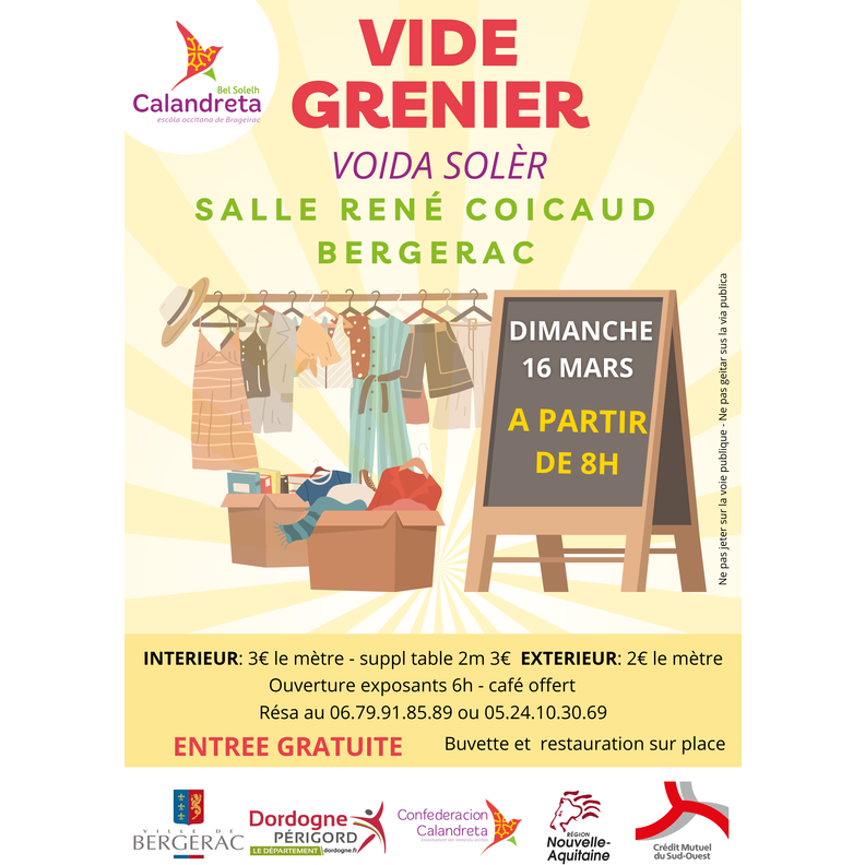 Vide-grenier en intérieur ( salle chauffée) et en exterieur. Buvette et petite restauration sur place