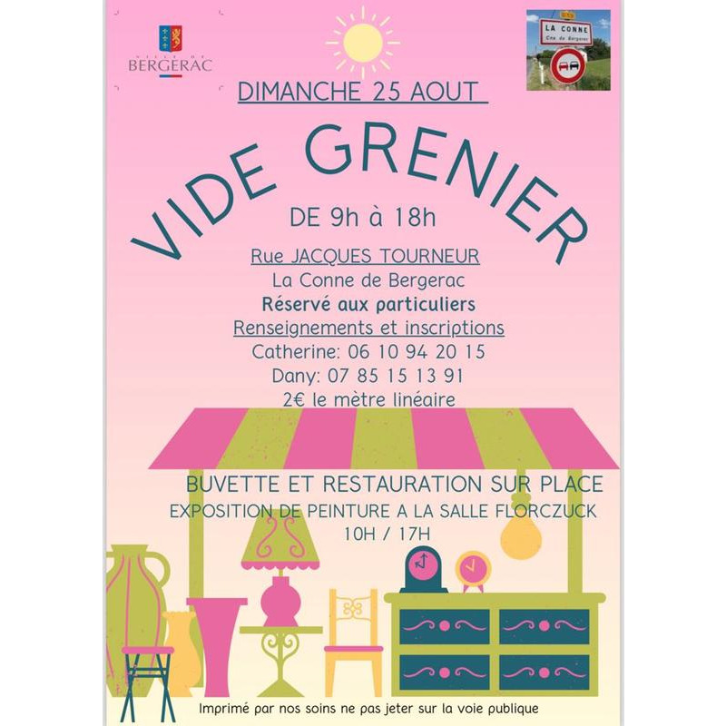 le vide grenier se situe à l'ancienne école de la conne de bergerac 2 rue jacques tourneur