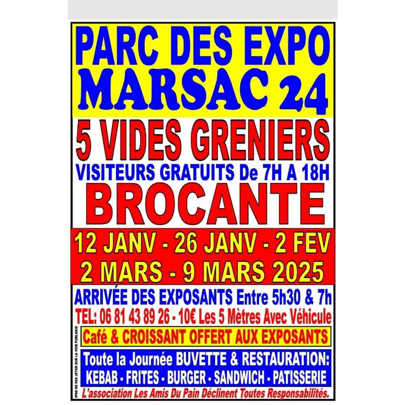 Nos rendez-vous 2025 vides greniers dans le parc des expo marsac sur l’isle en dordogne pour janvier février et mars 2025