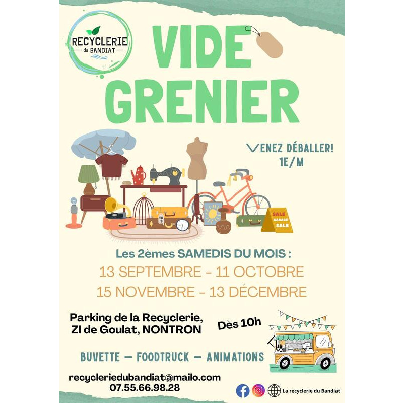 L'association la recyclerie du bandiat propose un vide grenier mensuel ouvert à tous sur le parking de son magasin solidaire, afin de permettre à ceux qui le souhaitent de venir vendre leurs biens d'occasion.