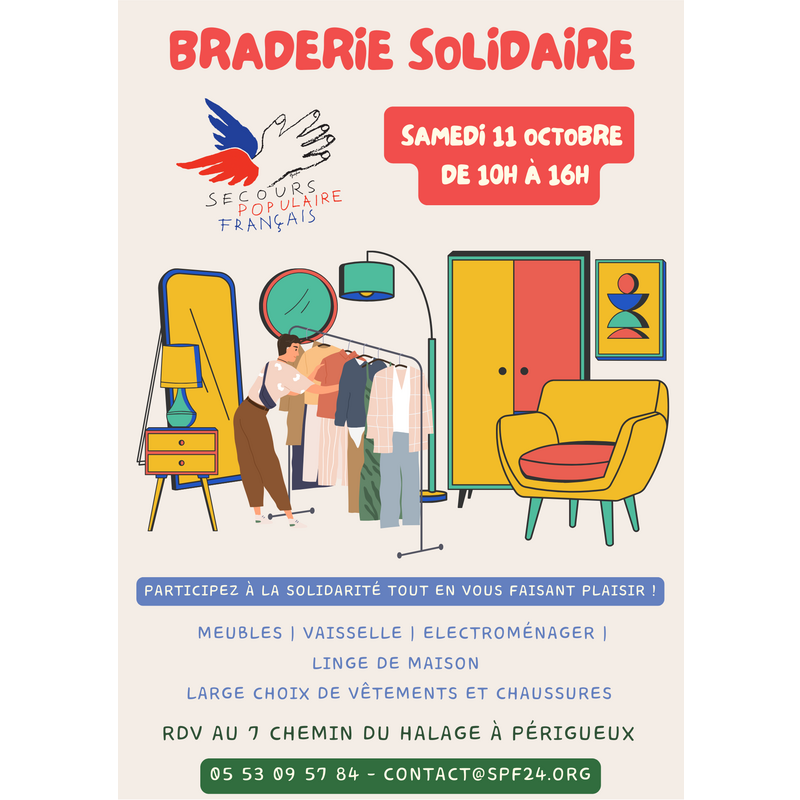 Un samedi par mois, venez découvrir un large choix de vêtements neufs ou d'occasion, de vaisselle, linge de maison, meubles, objets de décoration, bijoux...