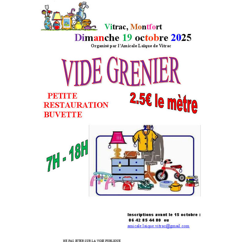Vide-grenier organisé par l'amicale laique de vitrac avec petite restauration et buvette sur place
