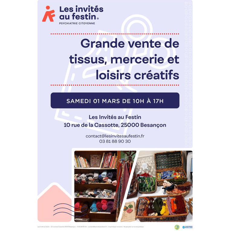 Les invités au festin vous convient à leur nouvelle grande vente de « tissus, mercerie et loisirs créatifs »