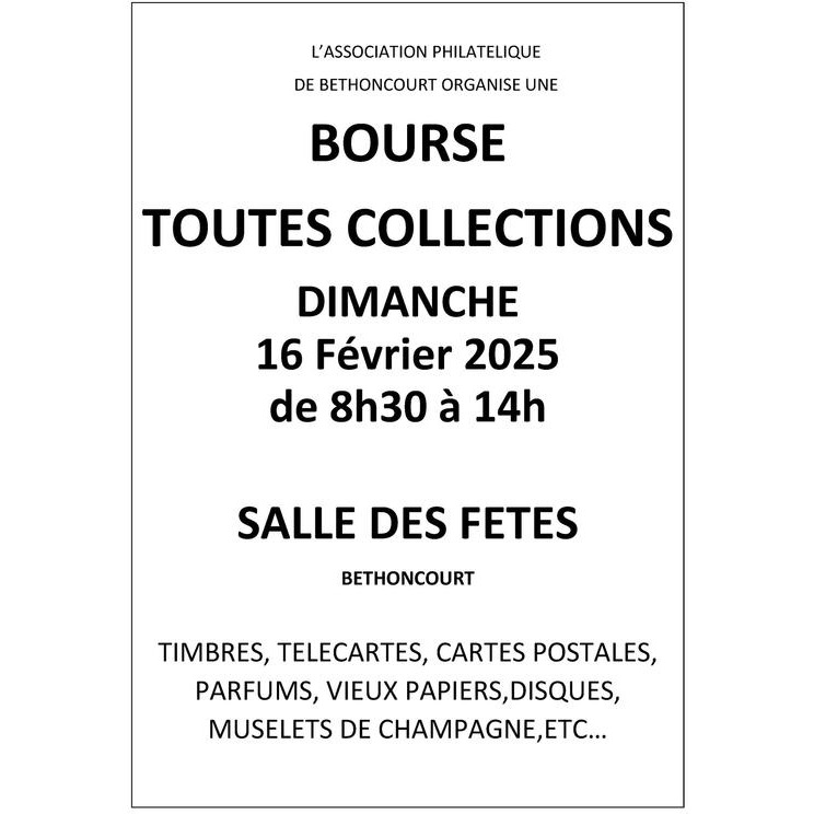 L’association philatélique de bethoncourt présente sa bourse toutes collections de février.