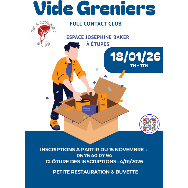 Vide-greniers organisé par tous les bénévoles de notre association. Buvette et petite restauration sur place.