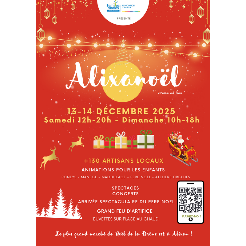 L'association famille rurales d'alixan organise son célèbre marché de noël “ alixanoël ”, les 13 & 14 décembre. Le plus grand marché de noël en drôme / ardèche !