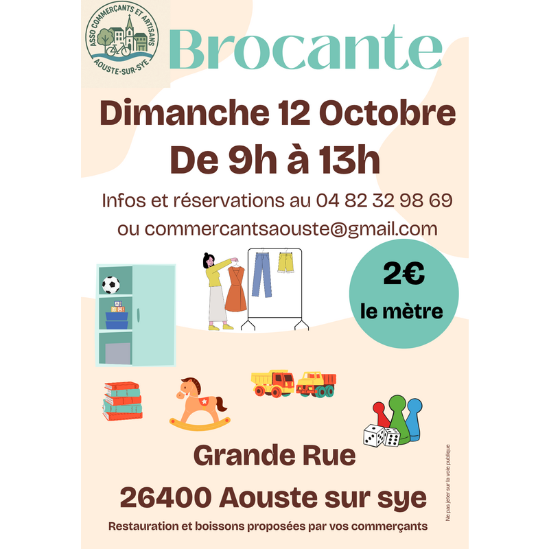 Brocante, le dimanche 12 octobre de 9h à 13h