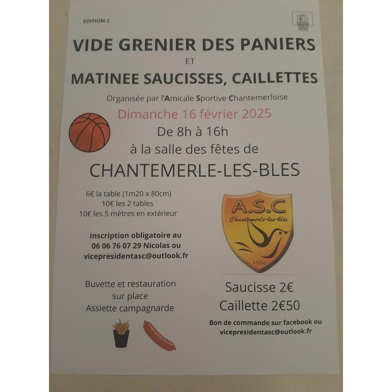 Vide greniers et matinée saucisses caillettes organisé par le club de basket de chantemerle.