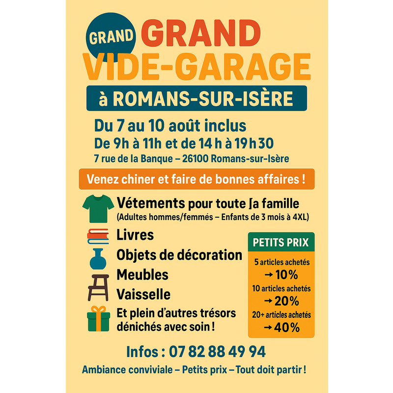 Une ambiance conviviale vous attend avec des petits prix et des réductions jusqu’à -40 % selon le nombre d’articles achetés !
