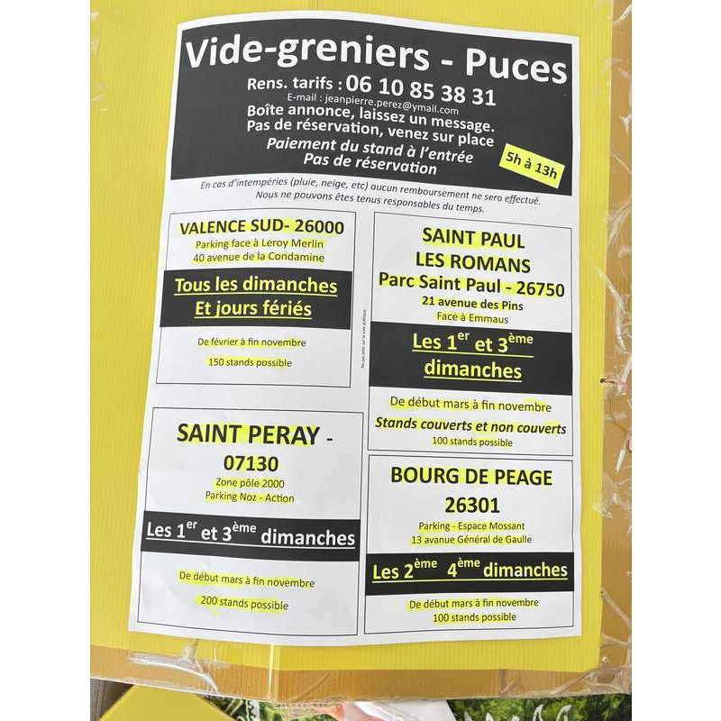 1 er et 3 eme dimanche. Des mois de mars a fin novembre. Placê convertes. À l abrit. De la pluie