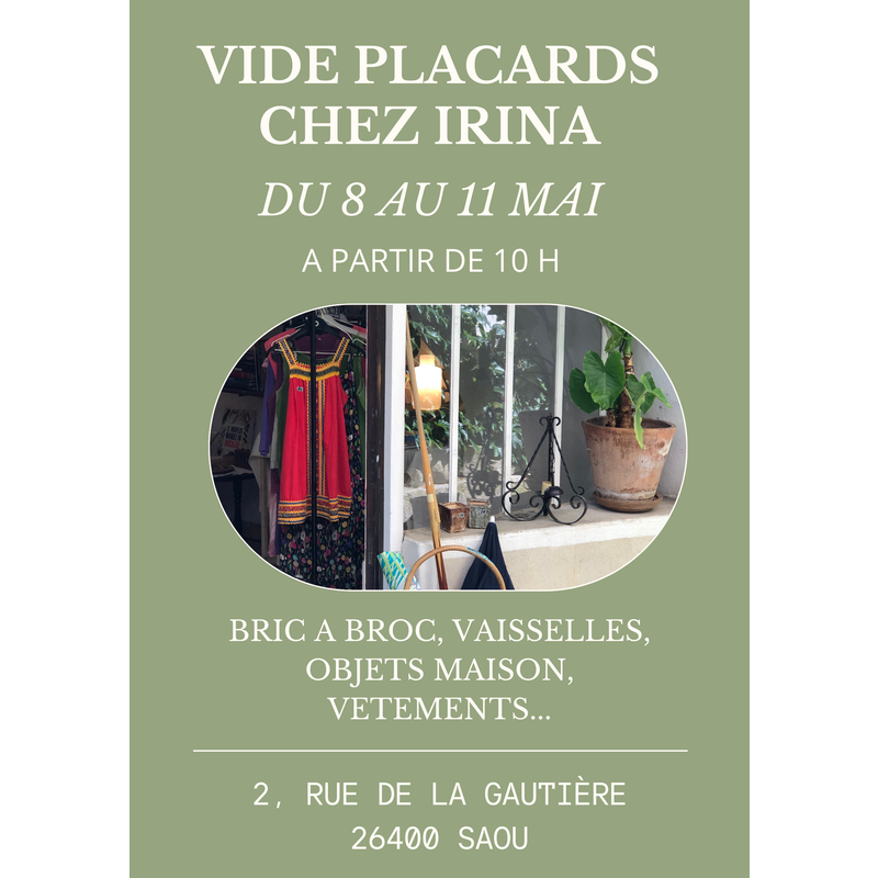 Vide placards, vide armoires, vide vaisseliers, il aura aussi des objets de déco, des vêtements et des accessoires, des bijoux et du bric à broc. De quoi fouiller et se faire plaisir!