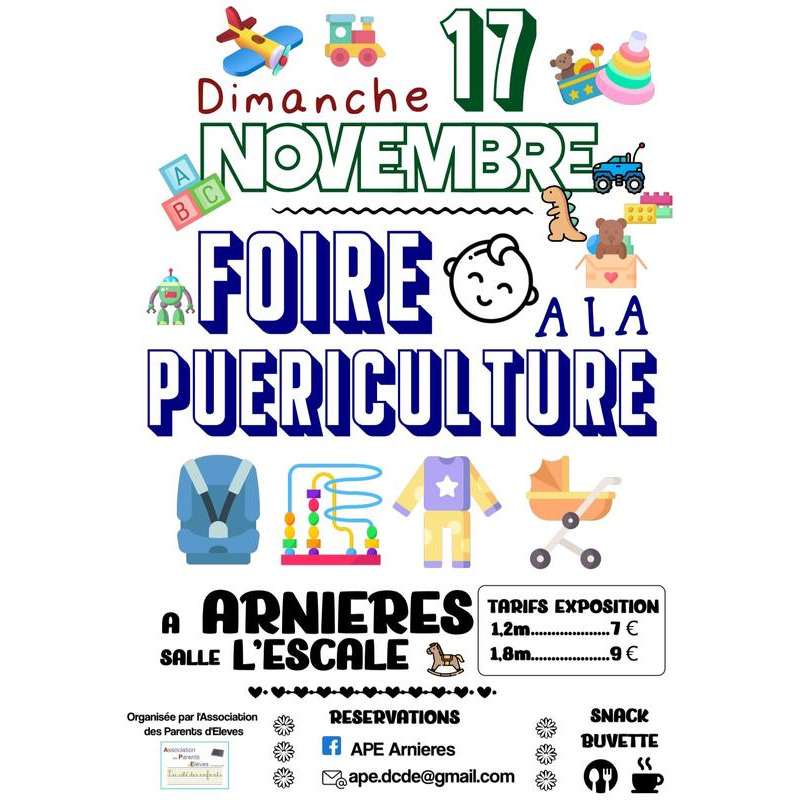 Ventes de jouets, vêtements et accessoires enfants au profit de l'association des parents d'élèves du côtes des enfants d'arnières-sur-iton.