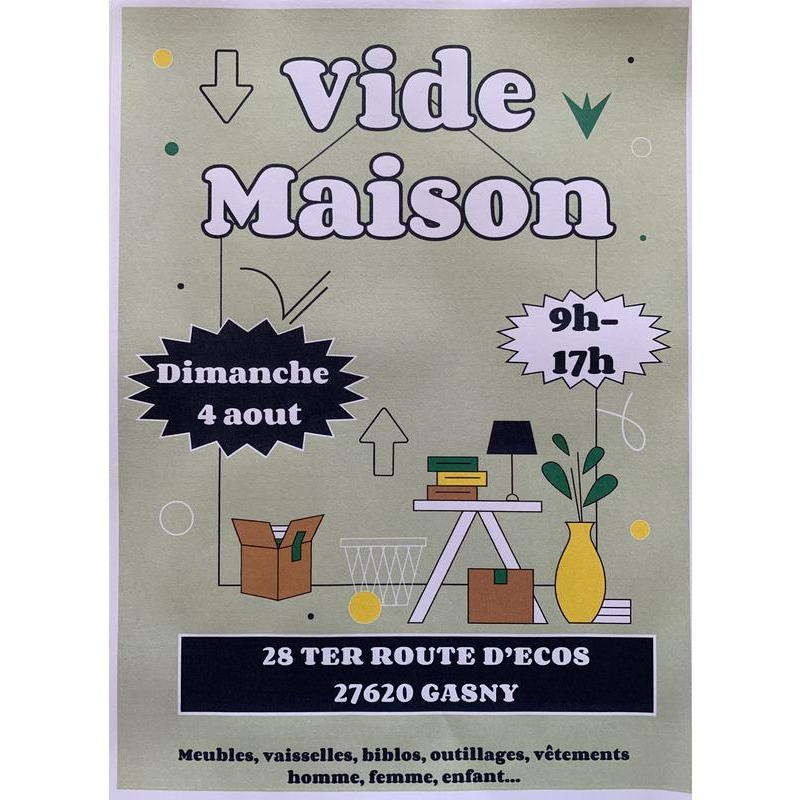 Vide maison, meubles, outils, vaisselles, tableaux, vêtements…