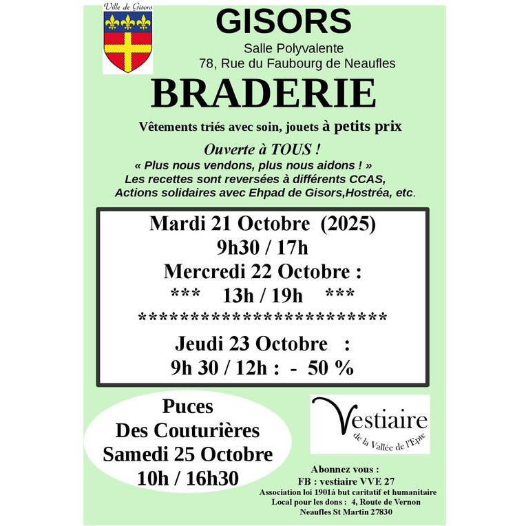 vente de vêtements soigneusement triés à petits prix (de 1€ pour les enfants, 1, 50€ adultes et 5€ manteaux )