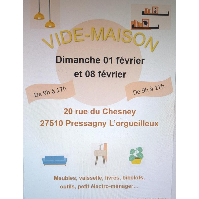 Présentez-vous à notre vide maison le 1 et 8 février : bibelots, bricolage, meubles, vaisselles