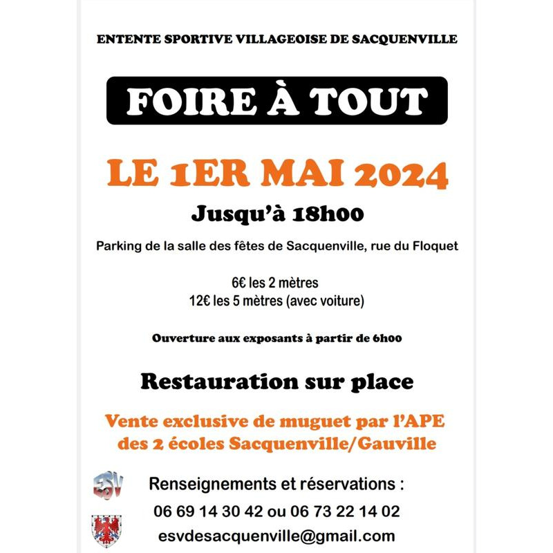 L'esv organise sa traditionnelle foire à tout du 1er mai sur le parking de la salle des fêtes de sacquenville