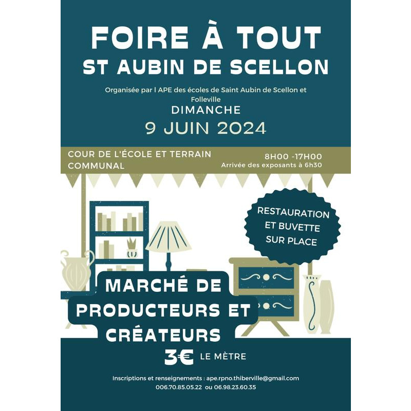 Nous organisons une foire à tout combiné avec un marché aux producteurs et créateurs locaux le dimanche 9 juin 2024.