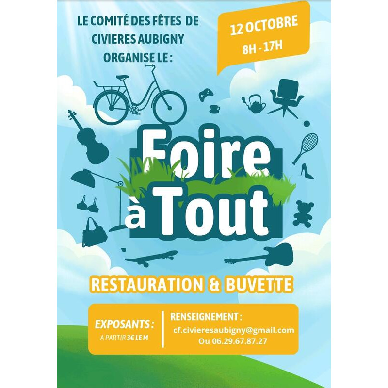 Foire à tout rue principale, restauration sur place, parking gratuit