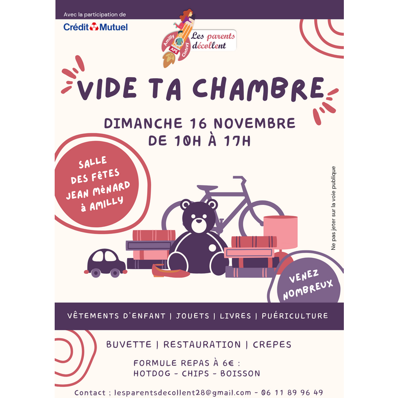 Venez vendre ou chiner jeux, jouets, livres, vêtements et articles de puériculture lors de notre vide ta chambre spécial enfants !