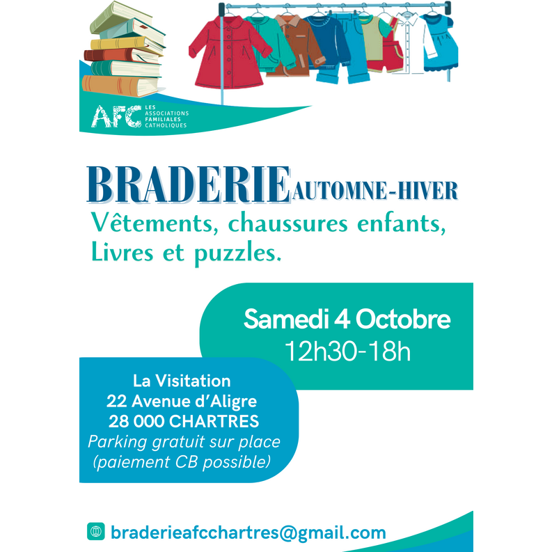 Braderie automne/hiver avec des vêtements et chaussures pour enfants ( 0 16 ans), des jeux ou encore des livres pour enfants. Beaucoup d'articles de différentes marques à petits prix.