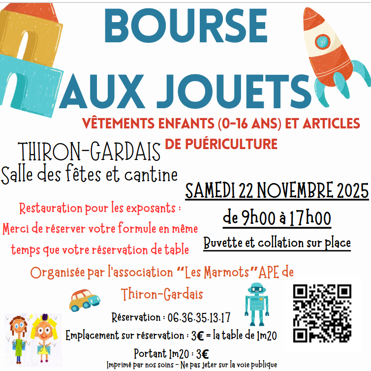 L'association des parents d'élèves les marmots organise de nouveau leur bourse aux jouets aux profits des enfants des écoles de thiron-gardais