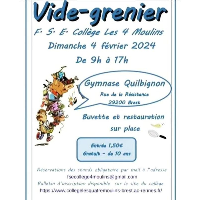 Les fse du collège les quatre moulins organise un vide grenier le dimanche 2 février 2025.