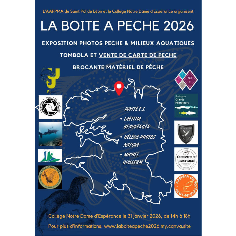 Vide grenier spécial matériel de pêche... Exposition photo pêche et milieux aquatiques... Petite restauration sur place.