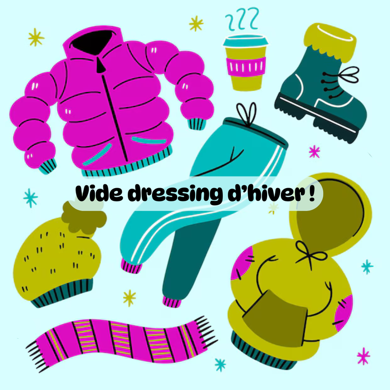 L'occasion de chiner des vêtements pas chers pour affronter l'hiver ! On organise un vide dressing convivial avec un thé ou tisane offerte. Seront proposés principalement des vêtements chauds comme des manteaux, des pulls, des gilets, des pantalons mais aussi des sacs, des sous vêtements etc... Les tailles vont en gros du 38 au 42.