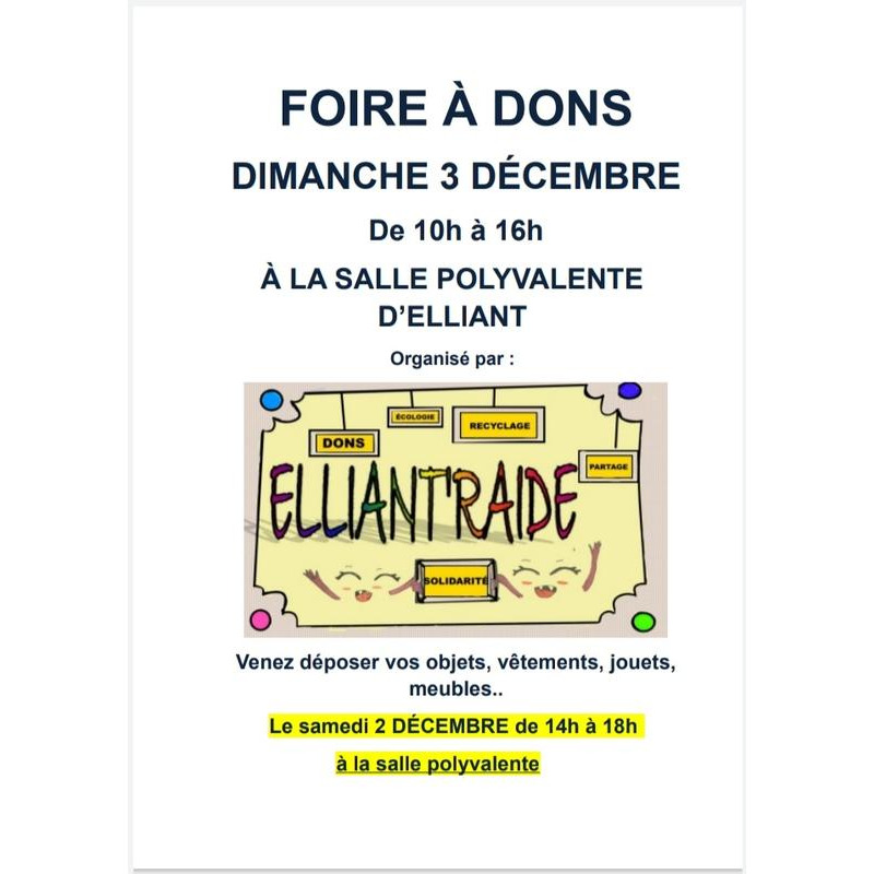Elliantraide organise la foire à dons le dimanche 3 décembre à la salle polyvalente d'elliant.