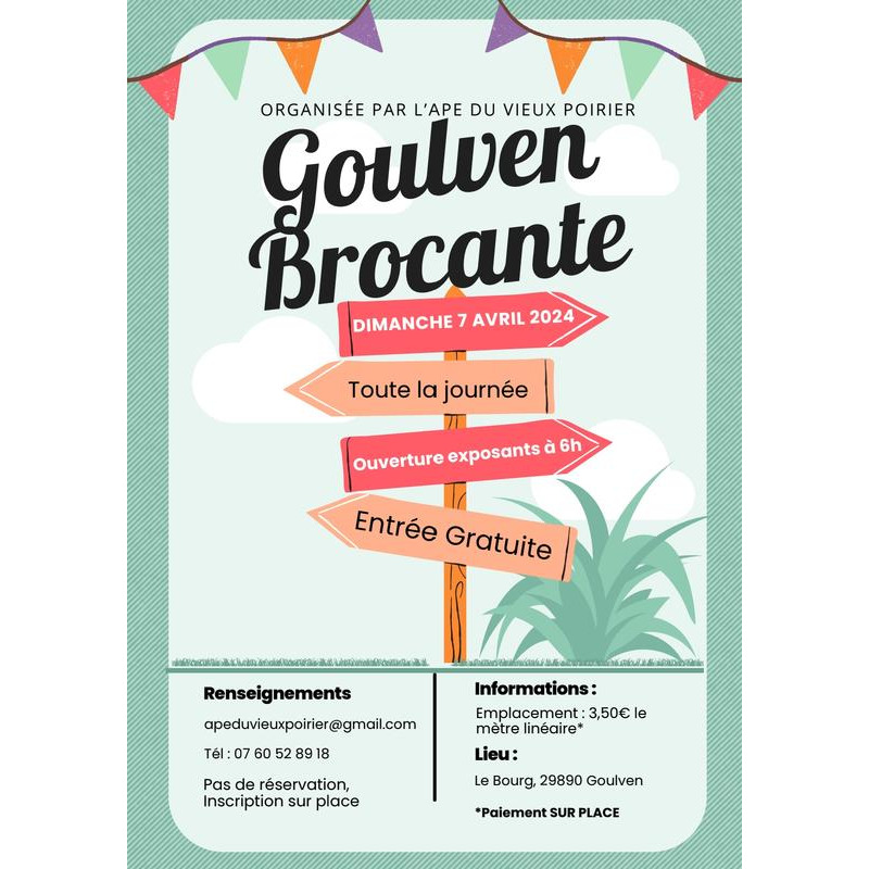 Vide grenier de goulven en plein bourg organisé par l'ape du vieux poirier de goulven.