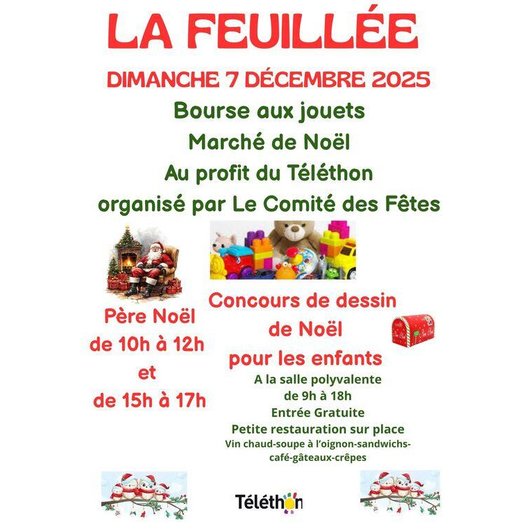 Bourse aux jouets et marché de noël organisés par le comité des fêtes au profit du téléthon.