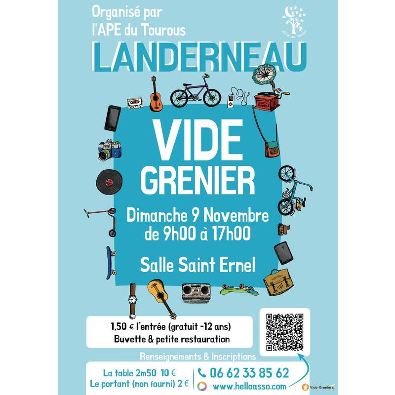 L'ape du tourous organise un vide-grenier à la salle saint ernel de landerneau le dimanche 9 novembre de 9h à 17h. Buvette et petite restauration sur place.