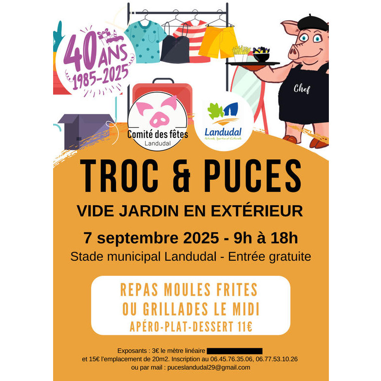 Organisé par le comité des fêtes de landudal, troc et puces en extérieur.