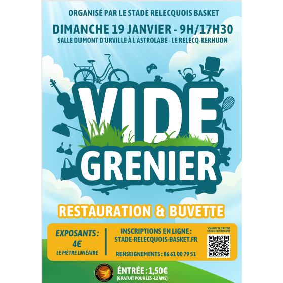 Le stade relecquois basket organise son vide grenier à la salle de l'astrolabe en bas.