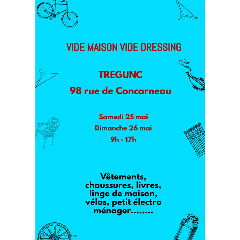 Vide placards, vêtements, chaussures, livres, linge de maison, vaisselle, petit électro ménager, etc....