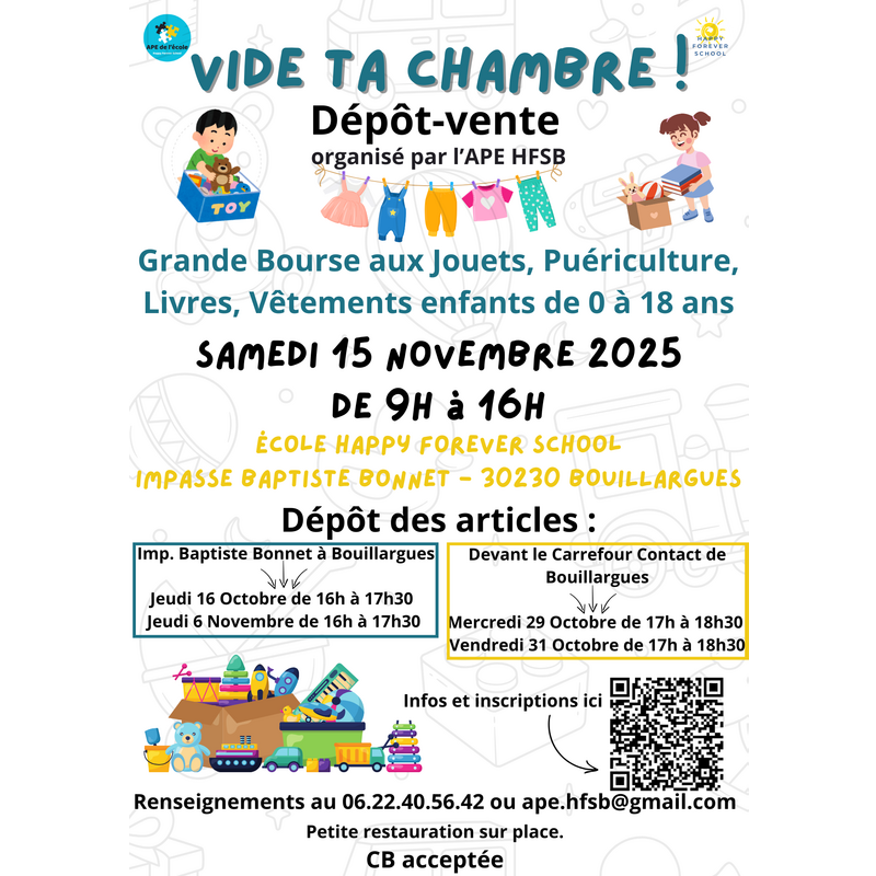 Grande bourse aux jouets, puériculture, livres, vêtements enfants de 0 à 18 ans.