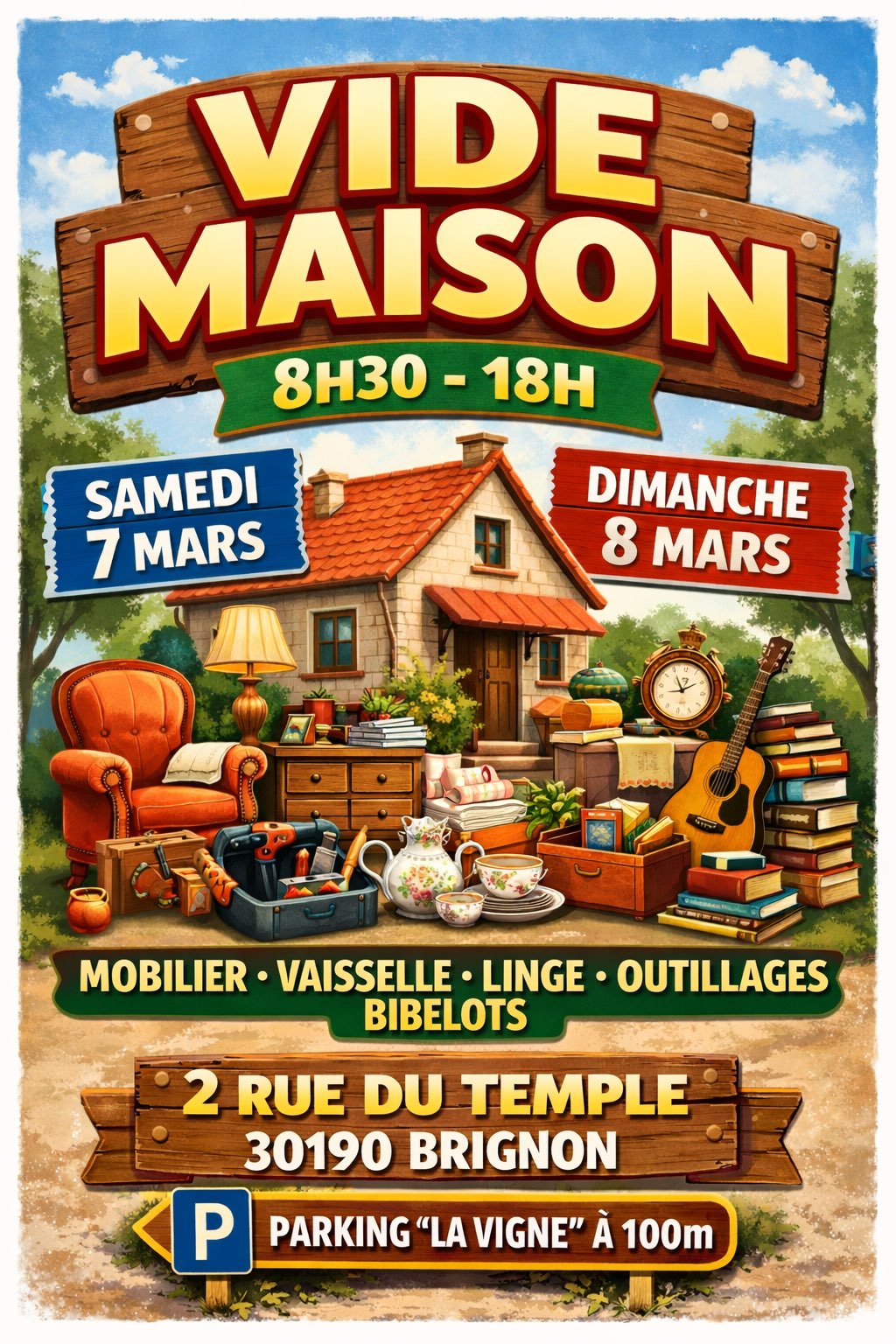 Grand vide maison: mobilier, vaisselle, linge, bibelots, outillage...