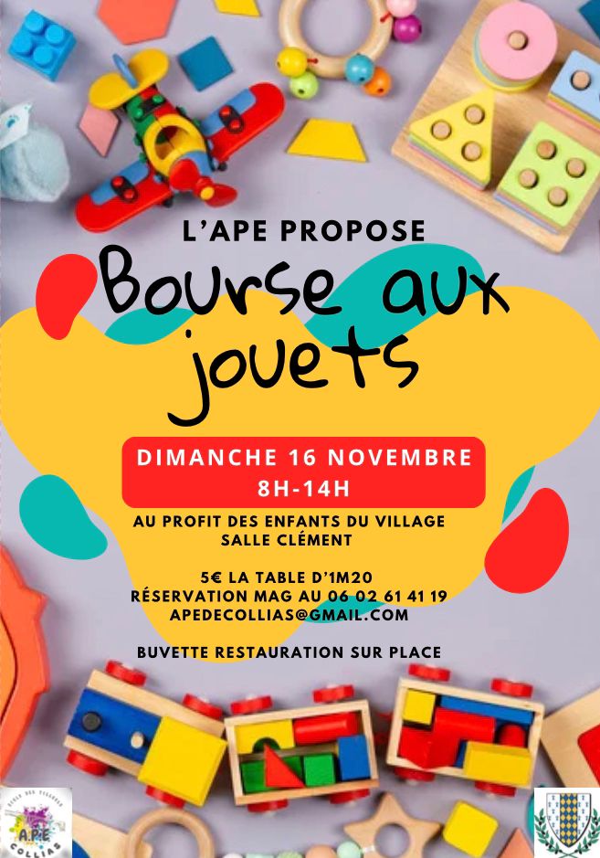 L'APE de Collias organise sa bourse aux jouets annuelle.