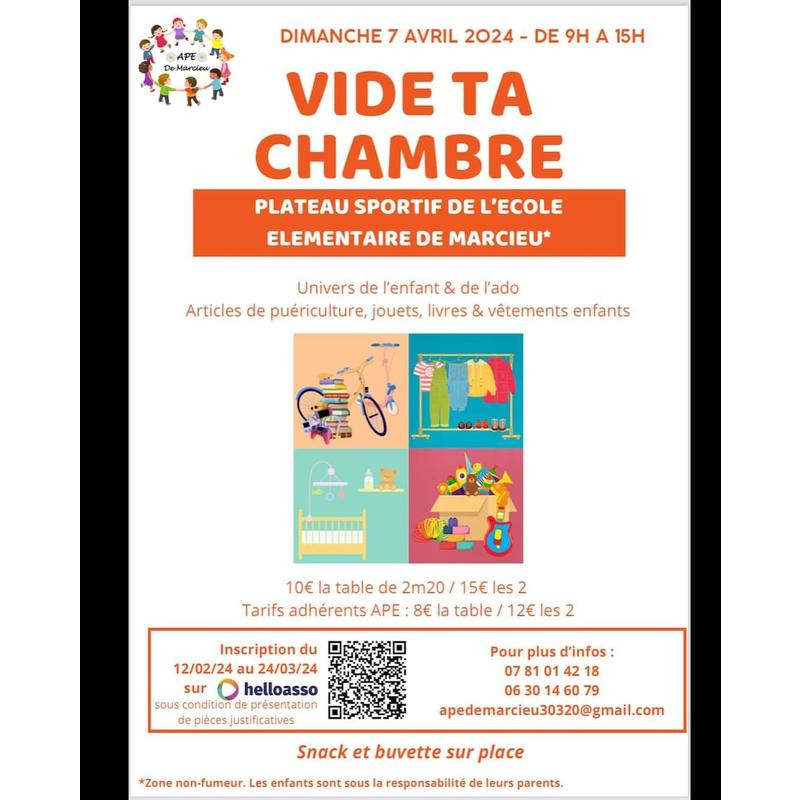 L'association des parents d'élève de l'école élémentaire de de marcieu organise son vide ta chambre le dimanche 07 avril 2024.