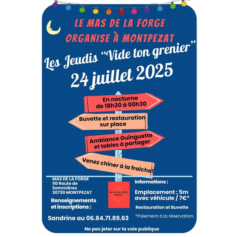 Le jeudi 24 juillet de 18h à 00h30, c’est vide-grenier nocturne au mas de la forge à montpezat !