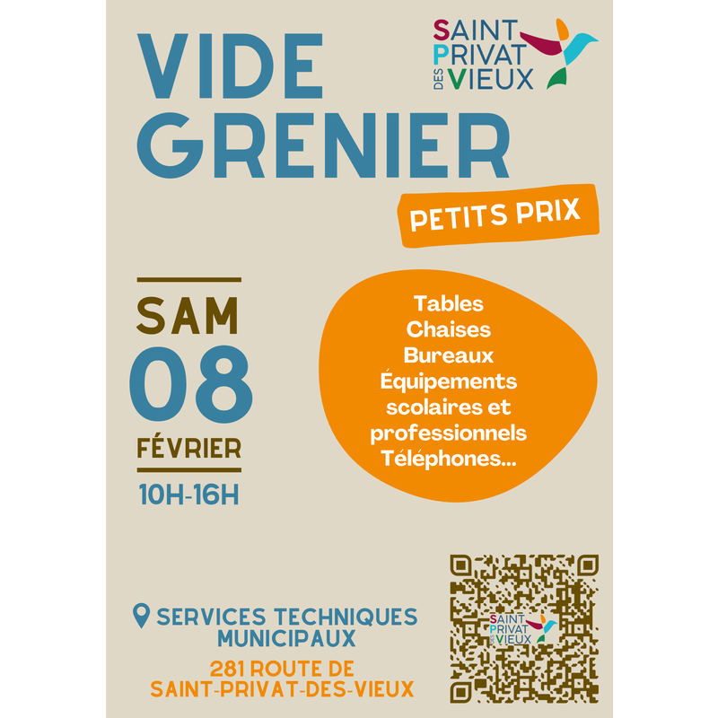 La mairie organise le 08 février de 10h à 16h un grand vide grenier au parc des services techniques.Venez dénicher des objets uniques, des meubles, et bien d’autres trouvailles à prix mini !