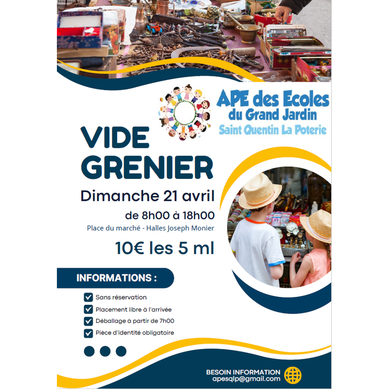 Vide grenier organisé par l'association des parents d'élève de l'école publique de saint quentin la poterie.