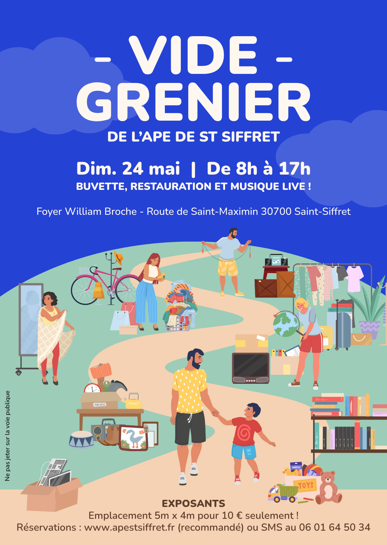 Pour faire de bonnes affaires et/ou faire de la place à la maison, rendez-vous dimanche 24 mai 2026 dès 8h à notre grand vide-grenier !
