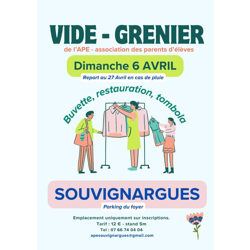 L'ape - association de parents d'eleves, organise un vide-greniers sur le parking du foyer de souvignargues.