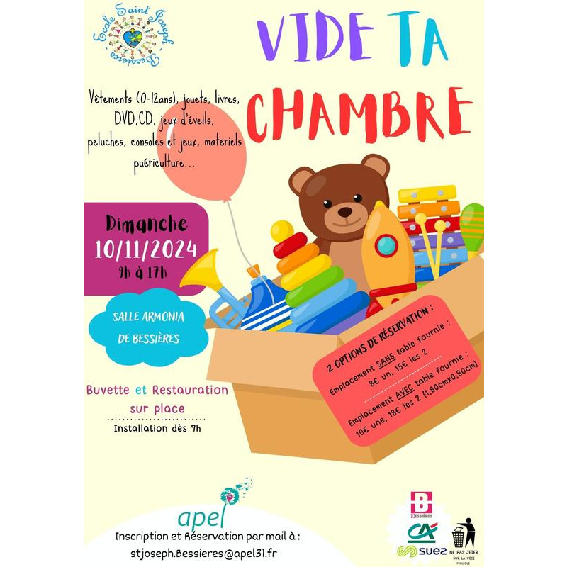 Le vide ta chambre est organisé par l'association des parents d'élèves de l'école saint joseph de bessières.
