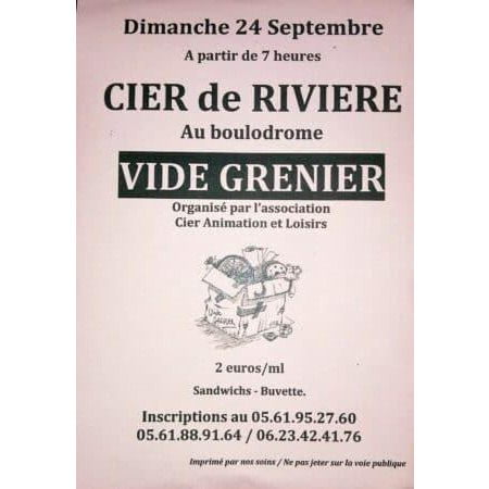 L’association cier animation et loisirs organise un vide-grenier au boulodrome à partir de 7h.