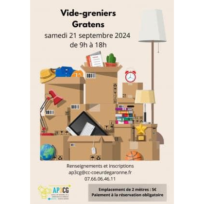 Vide-greniers organisé par l’amicale du personnel de la communauté de communes cœur de garonne, le samedi 21 septembre 2024.