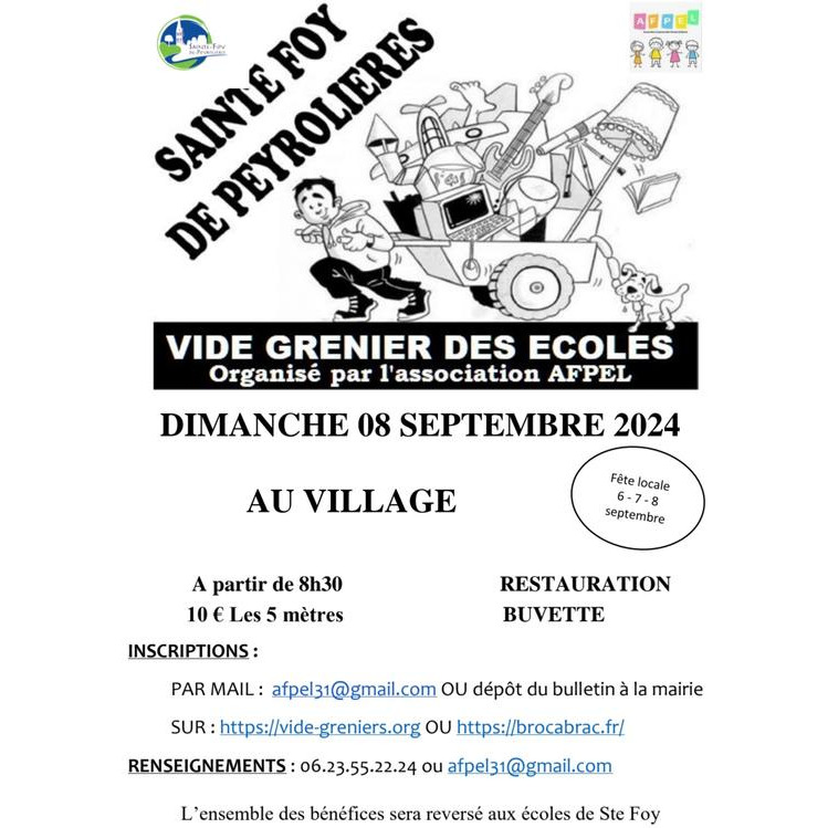 Vide grenier des écoles organisé par l'association des parents d'élèves afpel durant la fête local du village