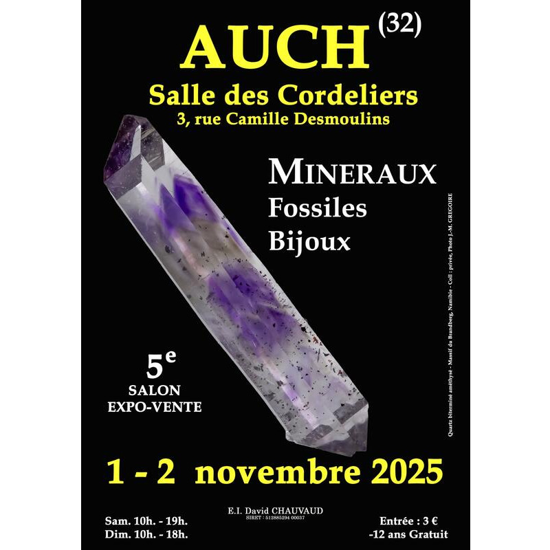 Hexagone mineral vous donne rendez-vous les 1er et 2 novembre 2025 à auch au cœur de la gascogne pour le 5e salon des minéraux fossiles et bijoux. Cet événement se déroulera comme pour les éditions précédentes dans la salle des cordeliers, rue camille desmoulins, en plein centre ville, à 300 m de la cathédrale. Pour animer ce salon, des exposants professionnels et amateurs originaires des quatre coins de france montreront au public leurs dernières nouveautés en provenance du monde entier, de france mais aussi du grand sud-ouest. Comme dans tous nos salons, un très large choix de minéraux, fossiles et bijoux sera proposé à la vente pour le plus grand bonheur des petits et des grands. Pour répondre toujours plus aux attentes du public, un service d'expertise gratuite sera aussi proposé par l'organisateur à celles et ceux qui souhaitent faire déterminer leurs découvertes minéralogiques ou paléontologiques. Ce salon devrait attirer de très nombreux passionnés tout en sensibilisant les néophytes et les plus jeunes aux merveilles de la terre.